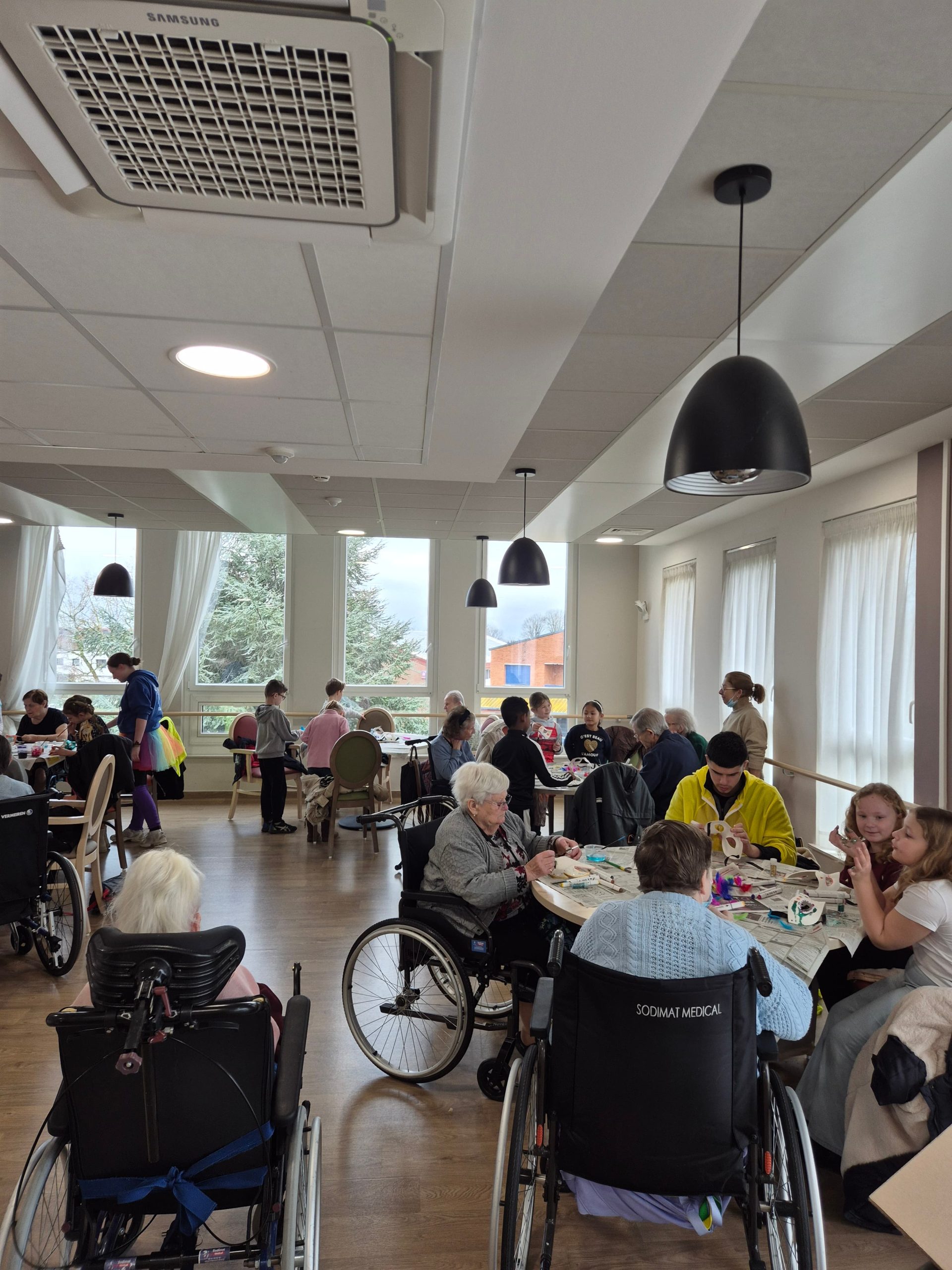DĂšs le dĂ©but de lâatelier, les sourires Ă©taient au rendez-vous đ. Les enfants, curieux et enthousiastes, se sont installĂ©s aux cĂŽtĂ©s des rĂ©sidents pour imaginer et confectionner leurs masques. Entre rires et Ă©changes, chacun a trouvĂ© sa place dans ce moment de partage đŹ